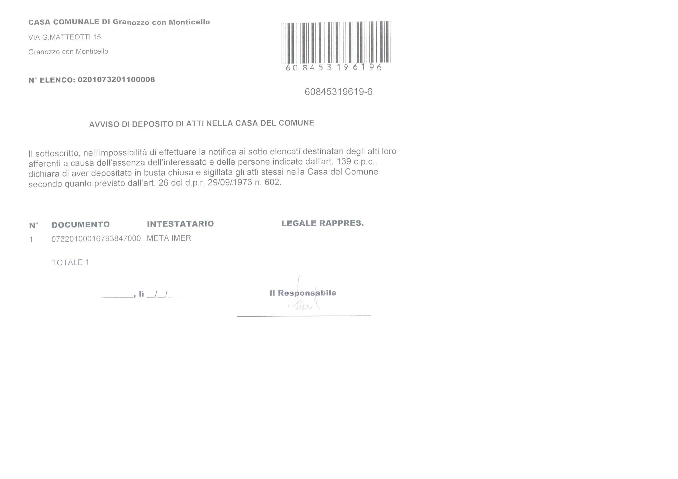 avviso di deposito atti - elenco n. 0201073201100008