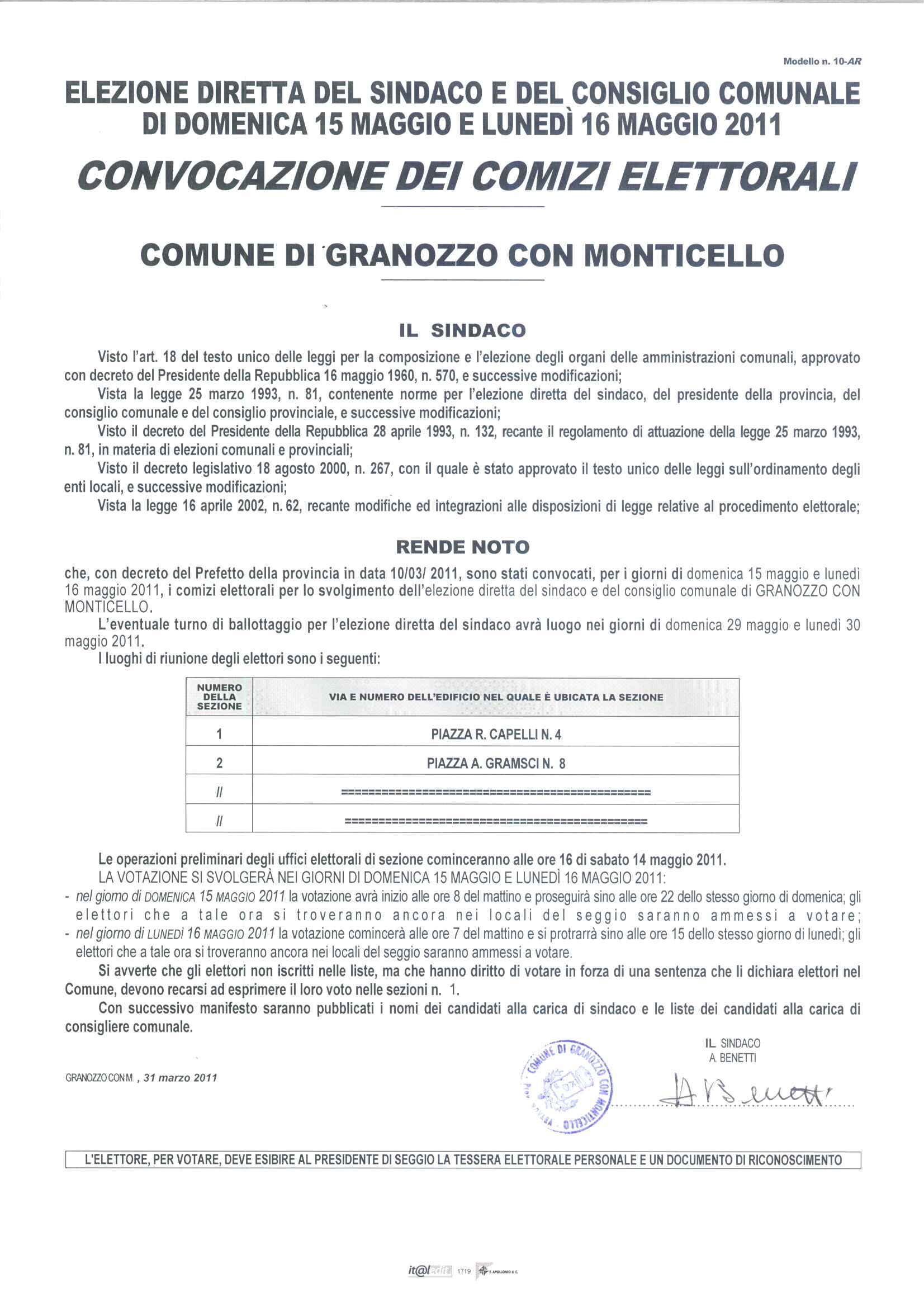 manifesto convocazione comizi elettorali