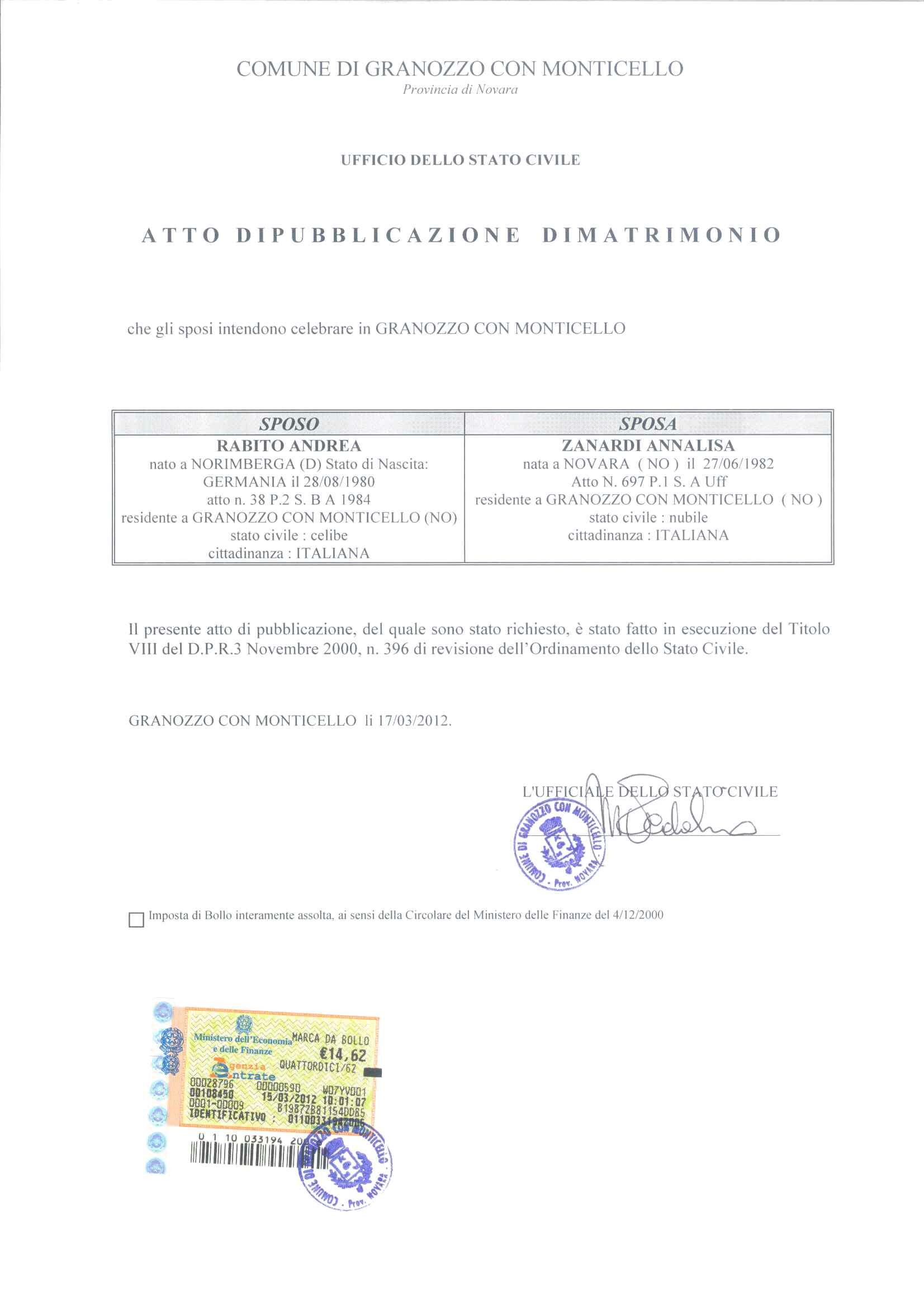 PUBBLICAZIONI DI MATRIMONIO RABITO/ZANARDI