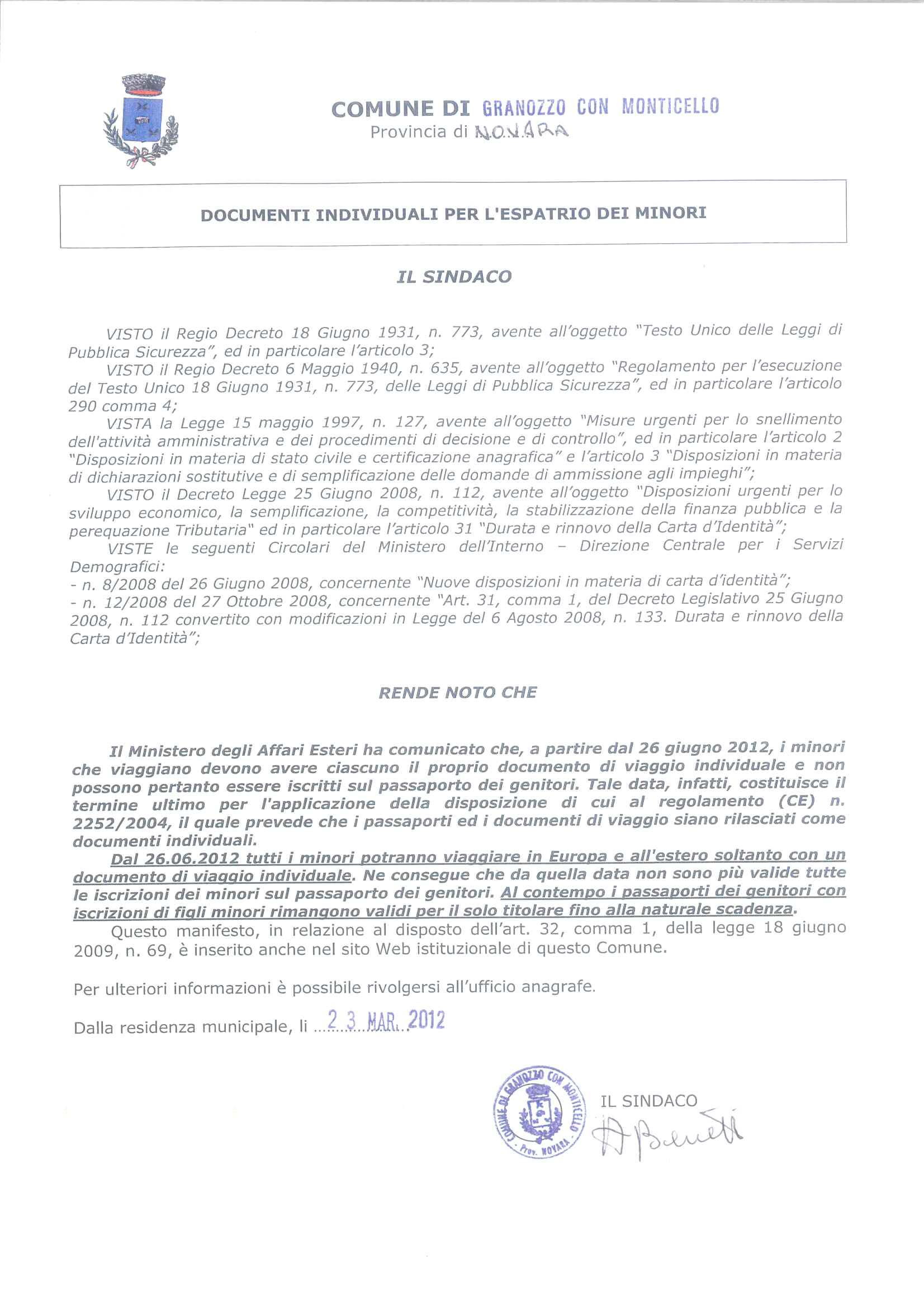 DOCUMENTI INDIVIDUALI PER L'ESPATRIO DEI MINORI