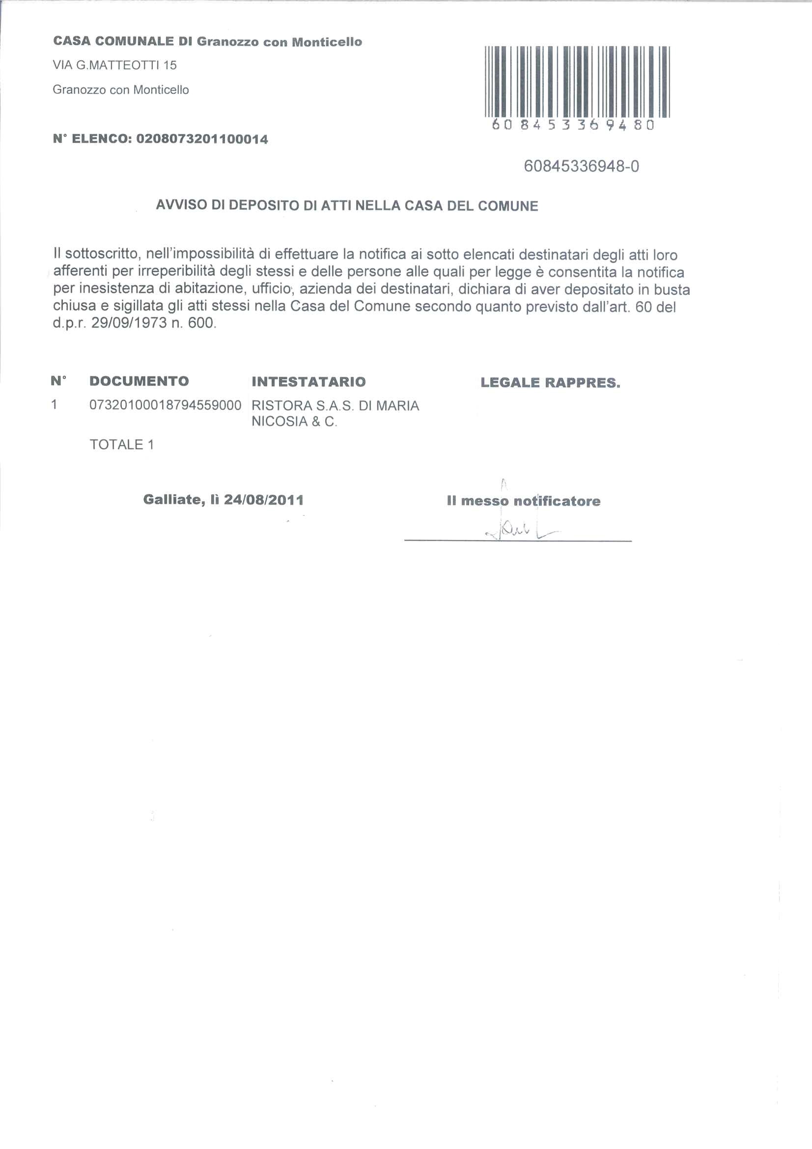 Avviso di deposito atto - elenco n. 0208073201100014