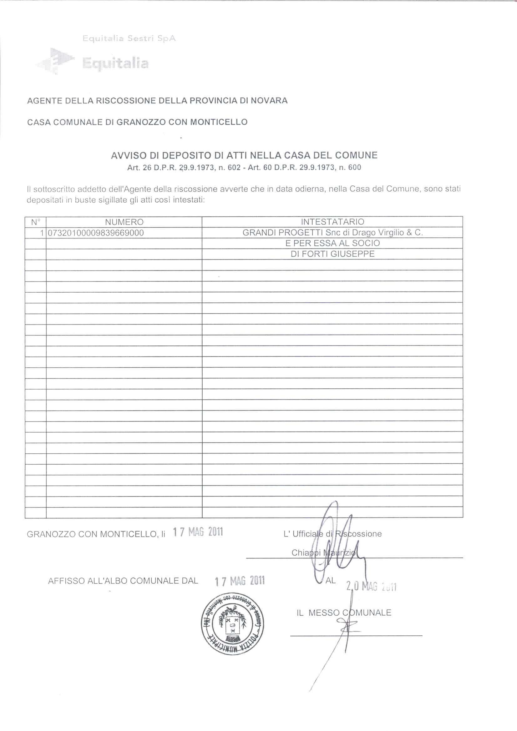avviso di deposito cartella esattoriale n. 07320100009839669
