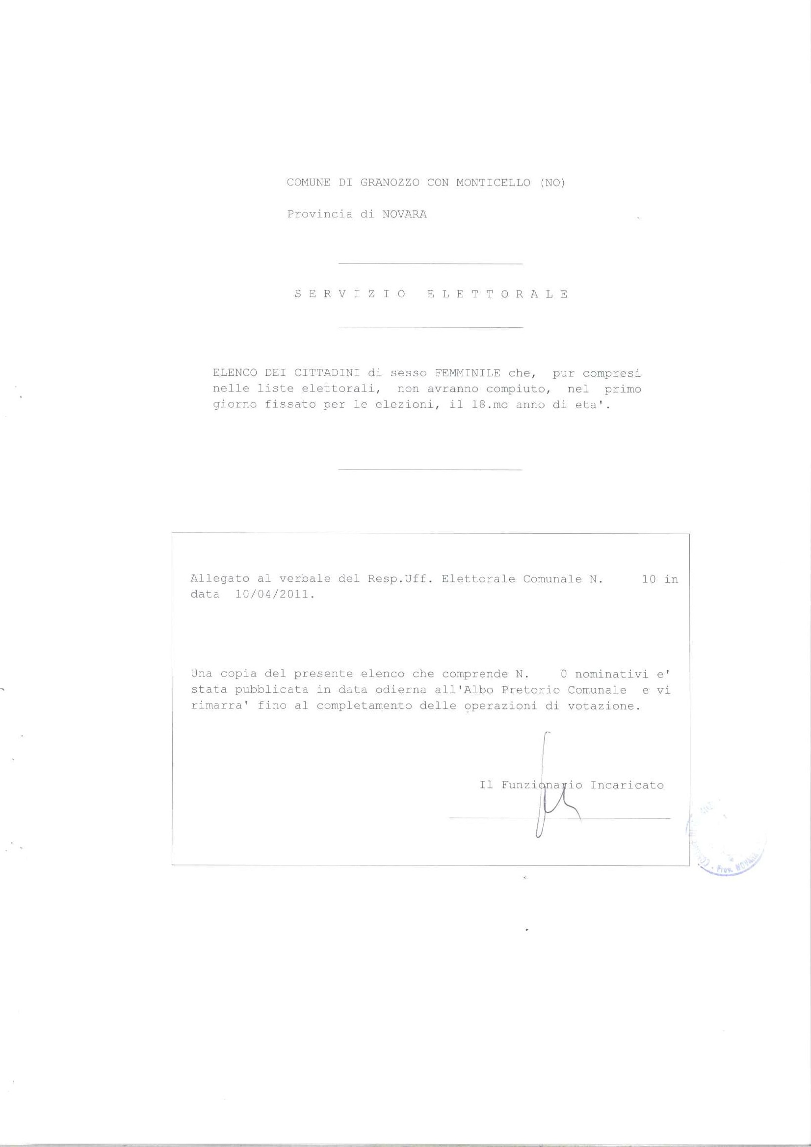 ELENCO CITTADINI CHE, PUR COMPRESI NELLE LISTE ELETTORALI, AL 15/05/2011 NON AVRANNO COMPIUTO I 18 ANNI