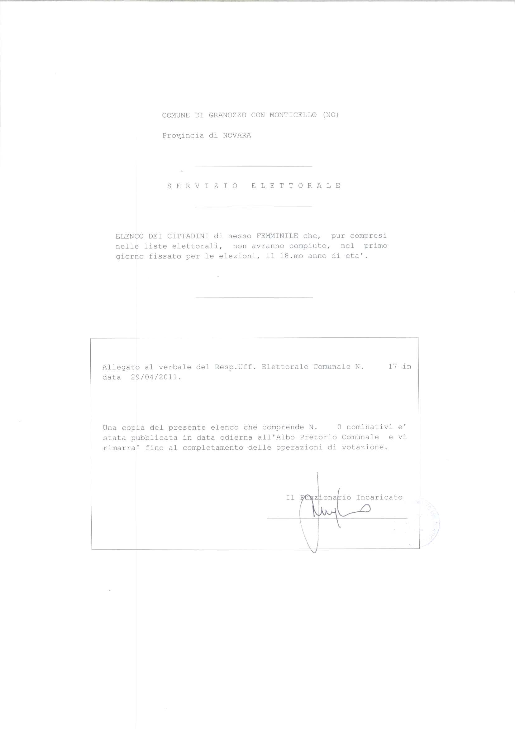 ELENCO CITTADINI CHE PUR COMPRESI NELLE LISTE ELETTORALI NON AVRANNO COMPUITO I 18 ANNI ALLA DATA DELLE CONSUKTAZIONI REFERENDARIE