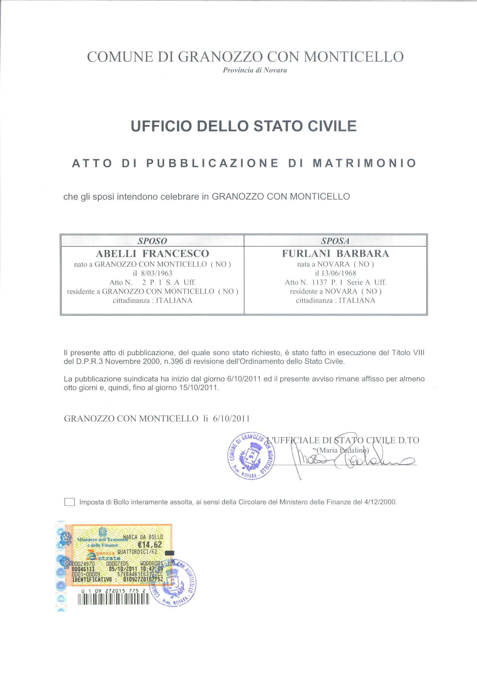 PUBBLICAZIONI DI MATRIMONIO