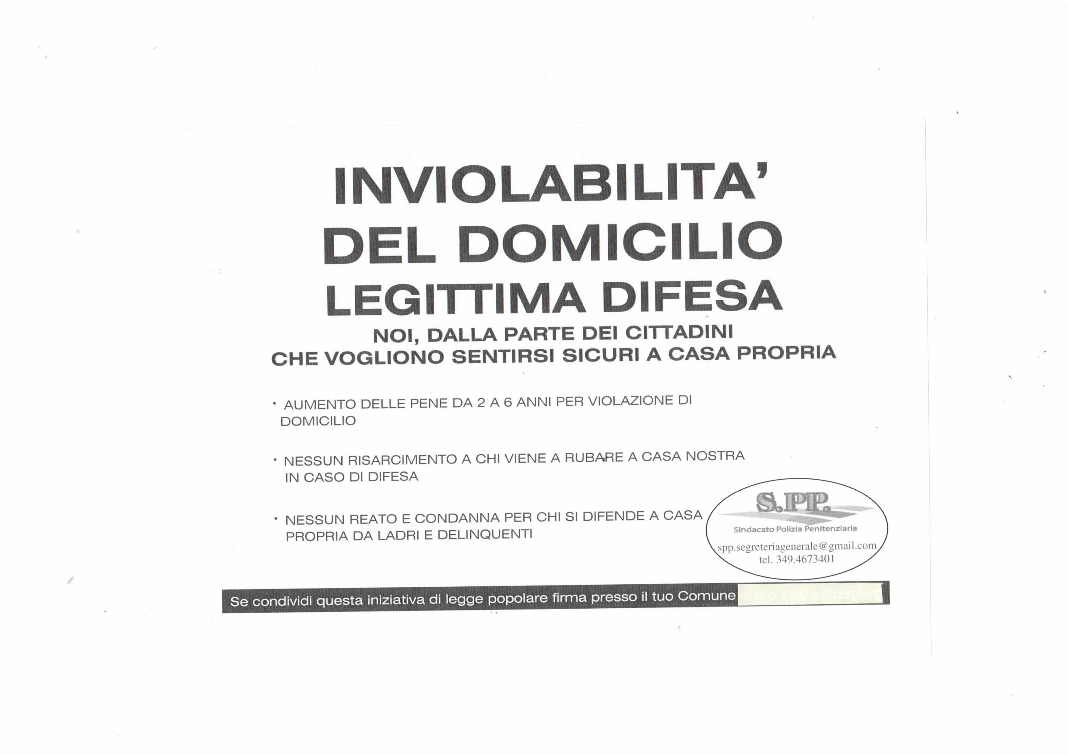 "MODIFICA DELLE NORME DISCIPLINARI: VIOLAZIONE DI DOMICILIO-LEGITTIMA DIFESA"